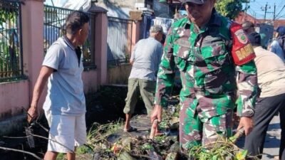 Kompak! Camat, Lurah dan Babinsa Koramil 1409-01/Somba Opu Pimpin Warga Batangkaluku Karya Bakti Bersihkan Drainase