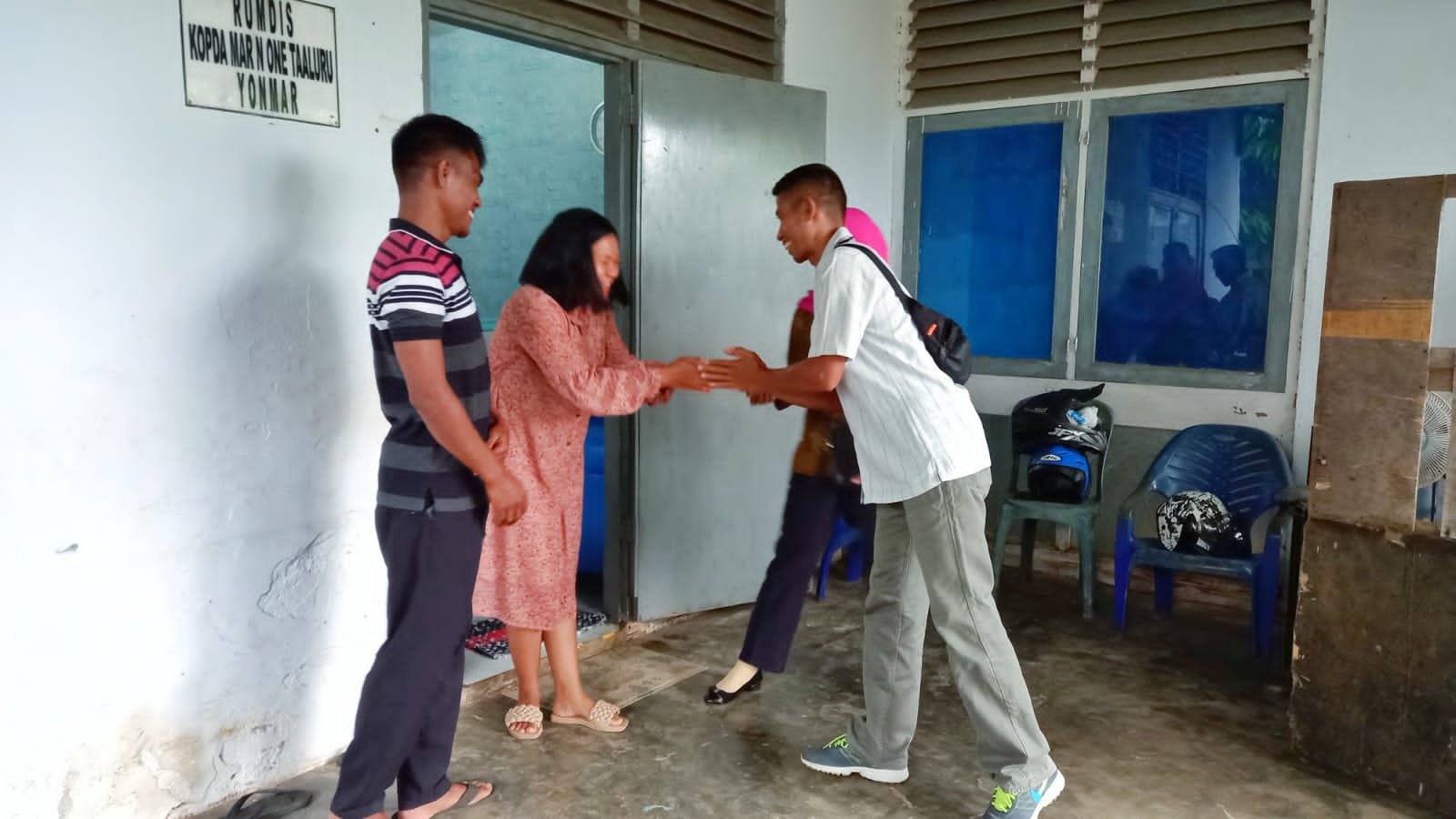 Makassar — Keluarga Besar Batalyon Marinir Pertahanan Pangkalan (Yonmarhanlan) VI Makassar, Letnan Dua Marinir Laode Musriwin (Danton 3 Kompi Senapan Yonmarhanlan VI/Mks) bersama istri melaksanakan anjangsana ke rumah dinas Koptu Marinir Nikxon Taaluru (Kapok 1 Regu 2 Ton 3 Kompi Senapan A) di Komplek TNI AL Lanraki Blok B No. 07, Berua Kel. Biringkanaya Kota Makassar. Sabtu (01/04/2023).
