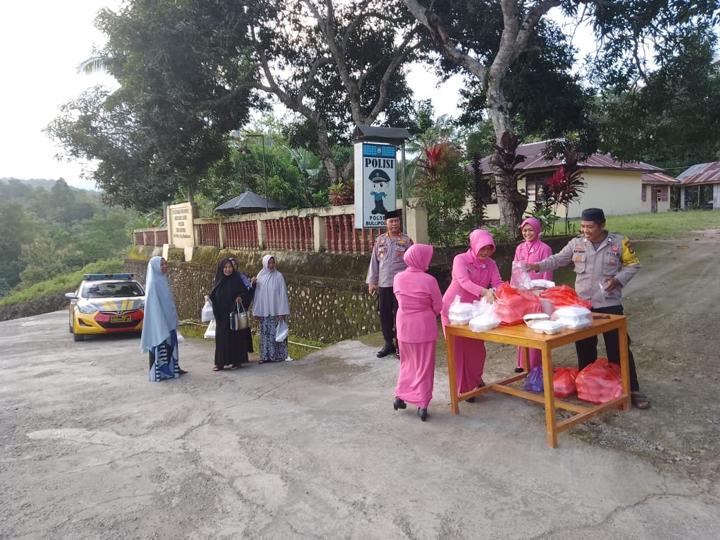 Sinjai – Menjelang berbuka Puasa, Personel Polsek Bulupoddo Polres Sinjai bersama Bayangkari Ranting membagikan takjil gratis pada masyarakat pengguna jalan didepan Mapolsek, dusun Sahoddi, Desa Lamatti Riattang, Kecamatan Bulupoddo, Kabupaten Sinjai. (13/4/2023).