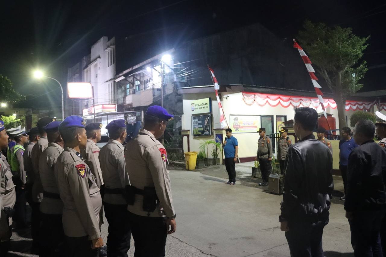 MAKASSAR – Kapolres Pelabuhan Makassar AKBP Yudi Frianto SIK, M.H pimpin apel siaga dalam rangkan pengamanan malam takbiran dan sholat Idul Adha 1444 H, di depan Mapolsek Wajo