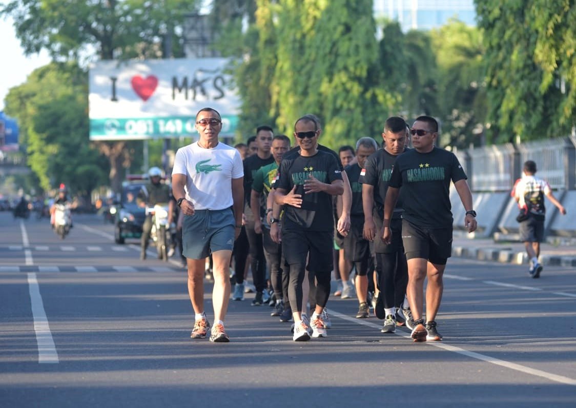 Makassar โ Di sela-sela kesibukannya selaku orang nomor satu di Kodam XIV/Hasanuddin, Pangdam XIV/Hasanuddin Mayjen TNI Dr. Totok Imam Santoso, S.I.P., S.Sos., M.Tr (Han)., berlari (jogging) bersama menyusuri jalan Kota Makassar. Jumat (21/07/2023).