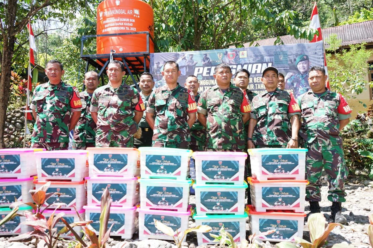 Cyber news86 — Panglima Kodam (Pangdam) XIV Hasanuddin Mayjen TNI Totok Imam Santoso meresmikan sarana air bersih program TNI AD Manunggal Air tahun 2023 di Kampung Pakua, Dusun Pangngajiang, Desa Parigi, Kecamatan Tinggimoncong, Selasa (25/07/ 20223)