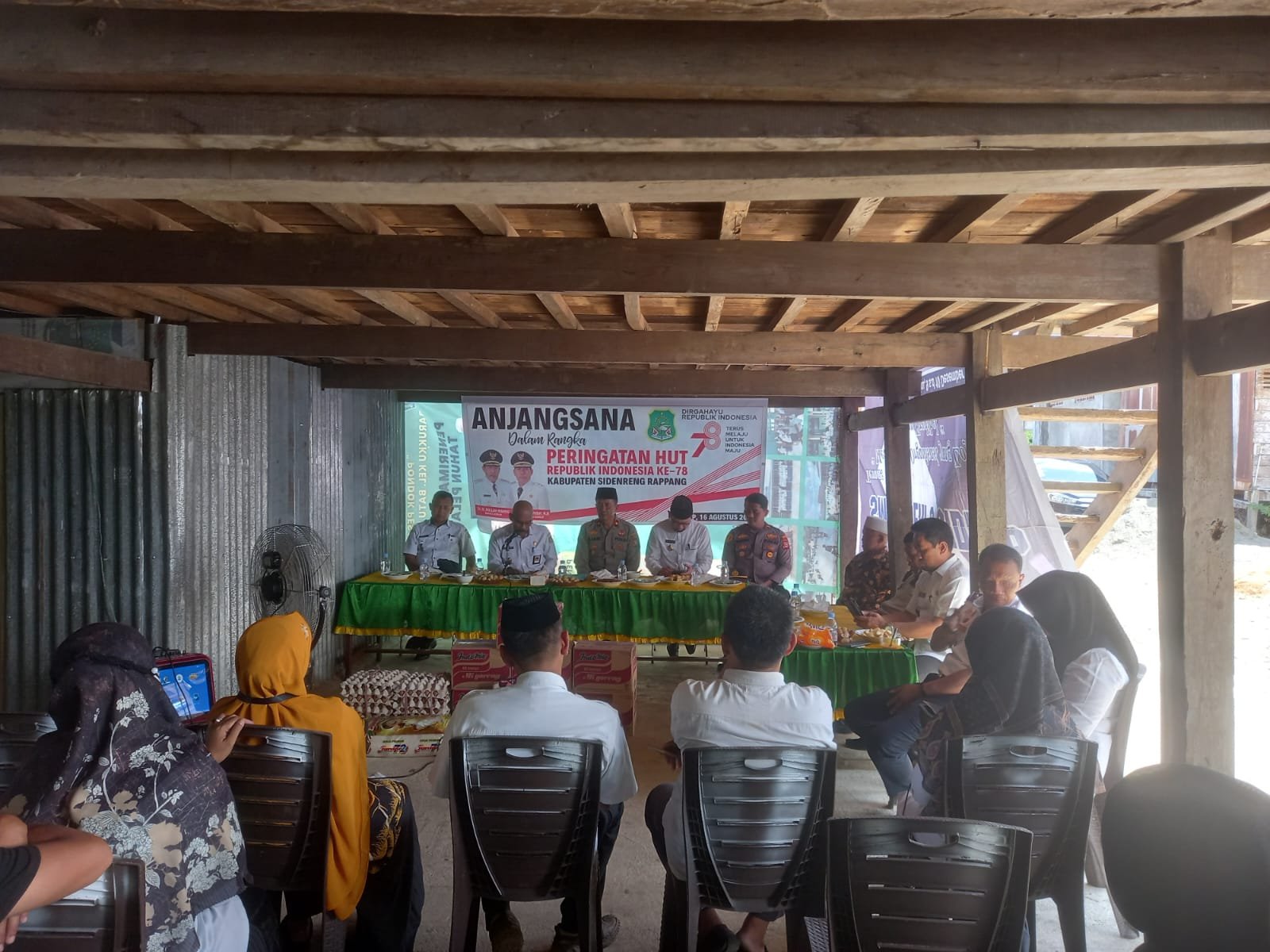 Kegiatan ini dihadiri oleh Asisten perekonomian dan pembagunan H. Siara Baranf, Kadis Pemdes H. Abbas Aras . SP. MAP, Kadis Kominfo H. Bachtiar, SH, M.Si, Kepala BPBD Kab. Sidrap H. Sudarmin, SE, M.Si, Kadis Perhubungan H. A. Bahari Parawansa, S.IP, Camat Pitu Riase A. Mukti Ali. SE. M.Adm. Pemb, Kapolsek Pitu Riase IPDA Mangopo Mansyur, S.H, Kabag Pemerintahan umum Fandi Ashari, SIP, Perwakilan Dinas Sosial dan Staf kecamatan Pitu Riase.