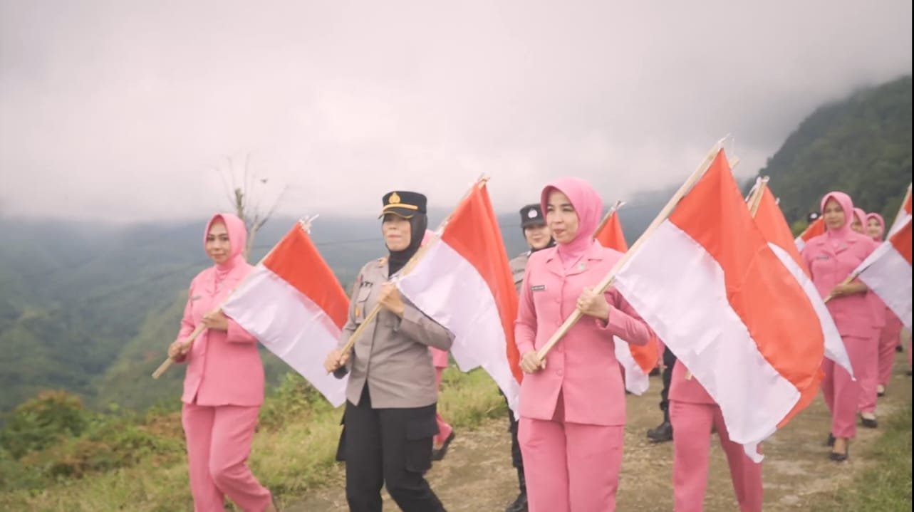 Sinjai – Dalam rangka Hari Ulang Tahun (HUT) Republik Indonesia Ke 78, Polwan Polres Sinjai bersama Bhayangkari mengibarkan Bendera Merah Putih di puncak tahura, di Kecamatan Sinjai Borong, Kabupaten Sinjai.