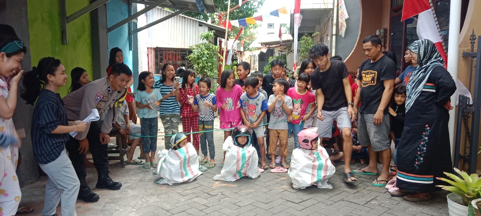 MAKASSAR – Dalam rangka untuk melakukan pemantauan kegiatan masyarakat terkait lomba dalam rangka memeriahkan HUT RI yang ke 78, Bhabinkamtibmas Pattunuang Aipda Basri berikan pengamanan