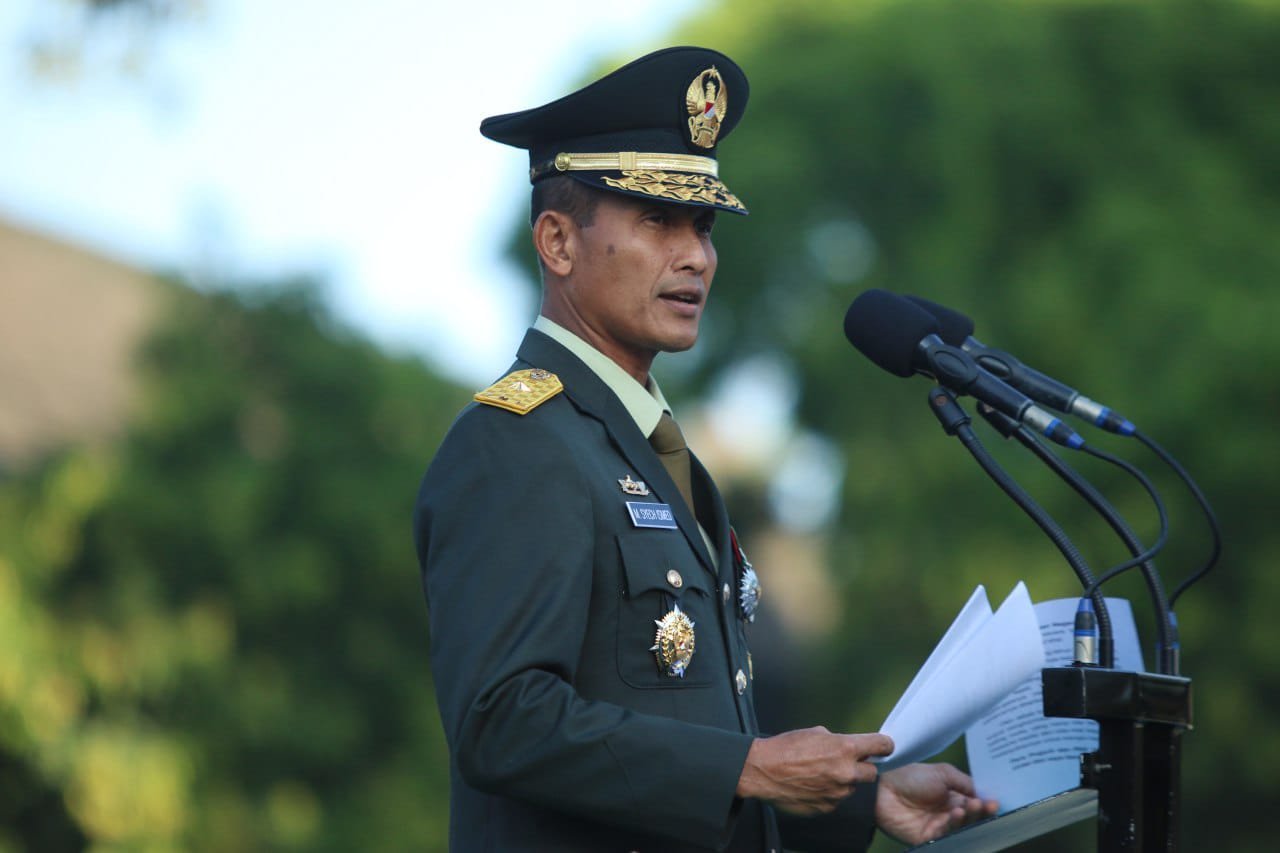 โMari kita jadikan peringatan kemerdekaan Indonesia ini menjadi tonggak baru untuk membangun komitmen yang lebih segar dengan memupuk karakter dan nilai-nilai luhur bangsa. Sebab apapun peran dan tugas yang prajurit serta PNS jajaran TNI lakukan, kita berada dalam satu kesatuan dan Komando TNIโ, Tegasnya.