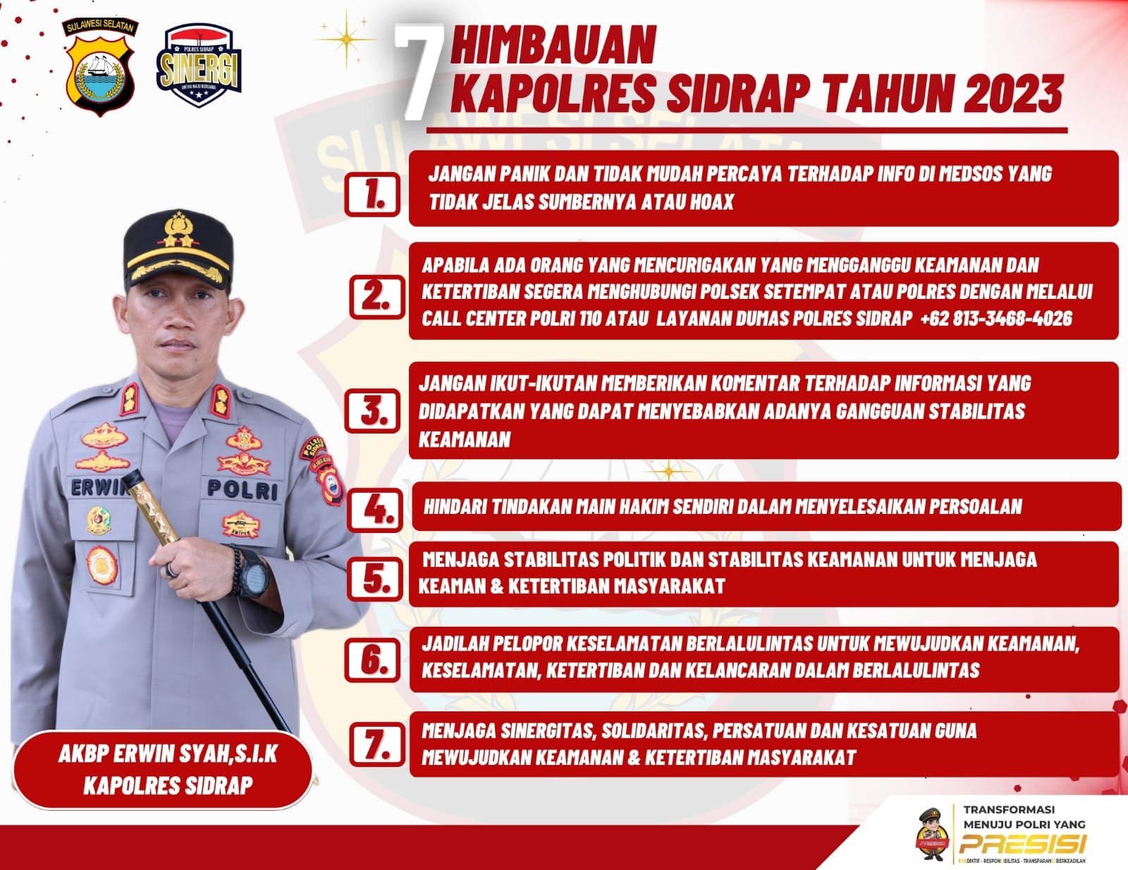 Berikut Himbauan Kapolres Sidrap AKBP Erwin Syah, S.I.K