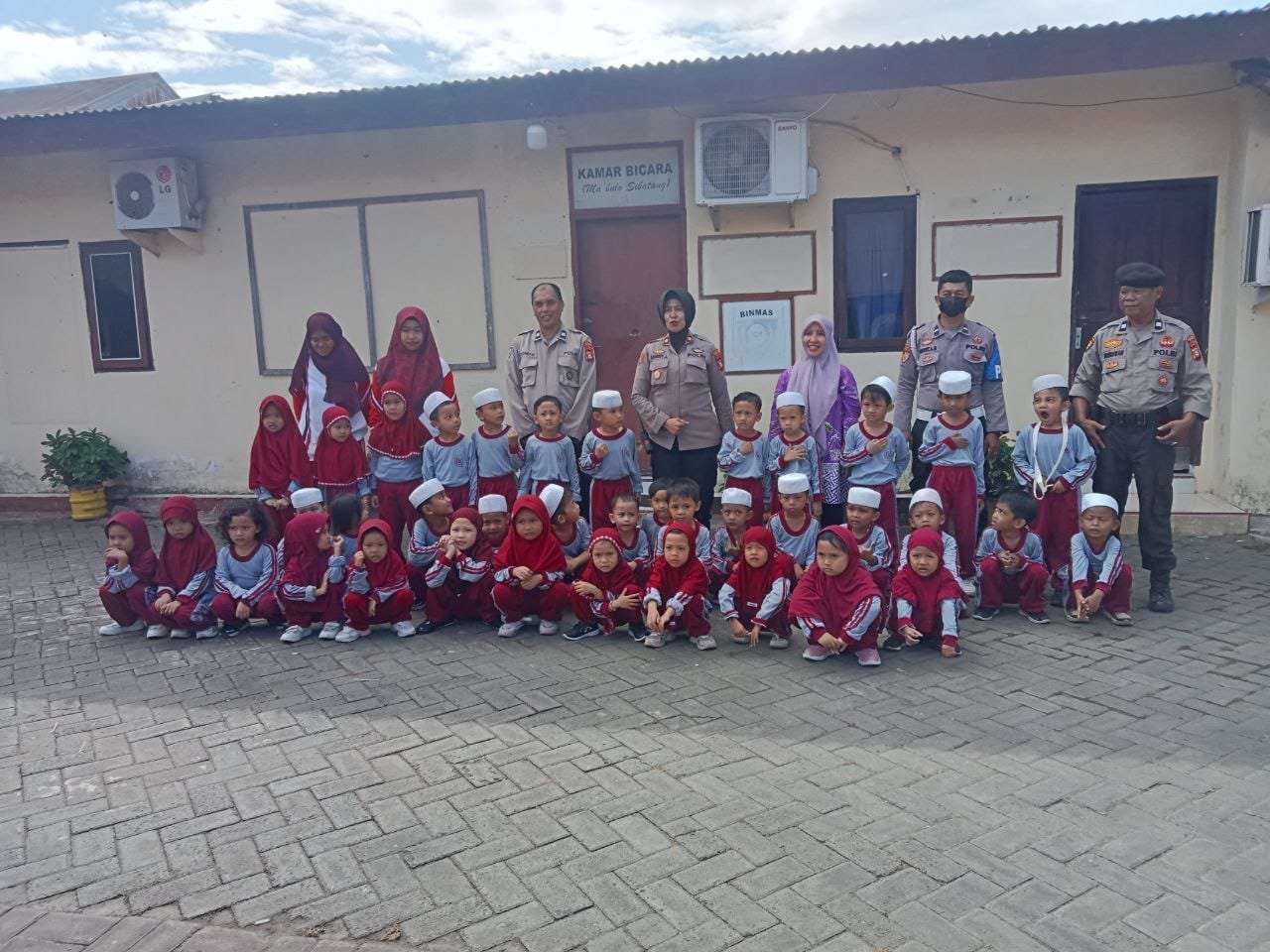 HUMDER – Sejumlah anak – anak TK Raodatul Atfa Alqautzar mengunjungi Polsek Ujung Tanah Polres Pelabuhan Makassar dalam rangka Kegiatan Polri Sahabat Anak.