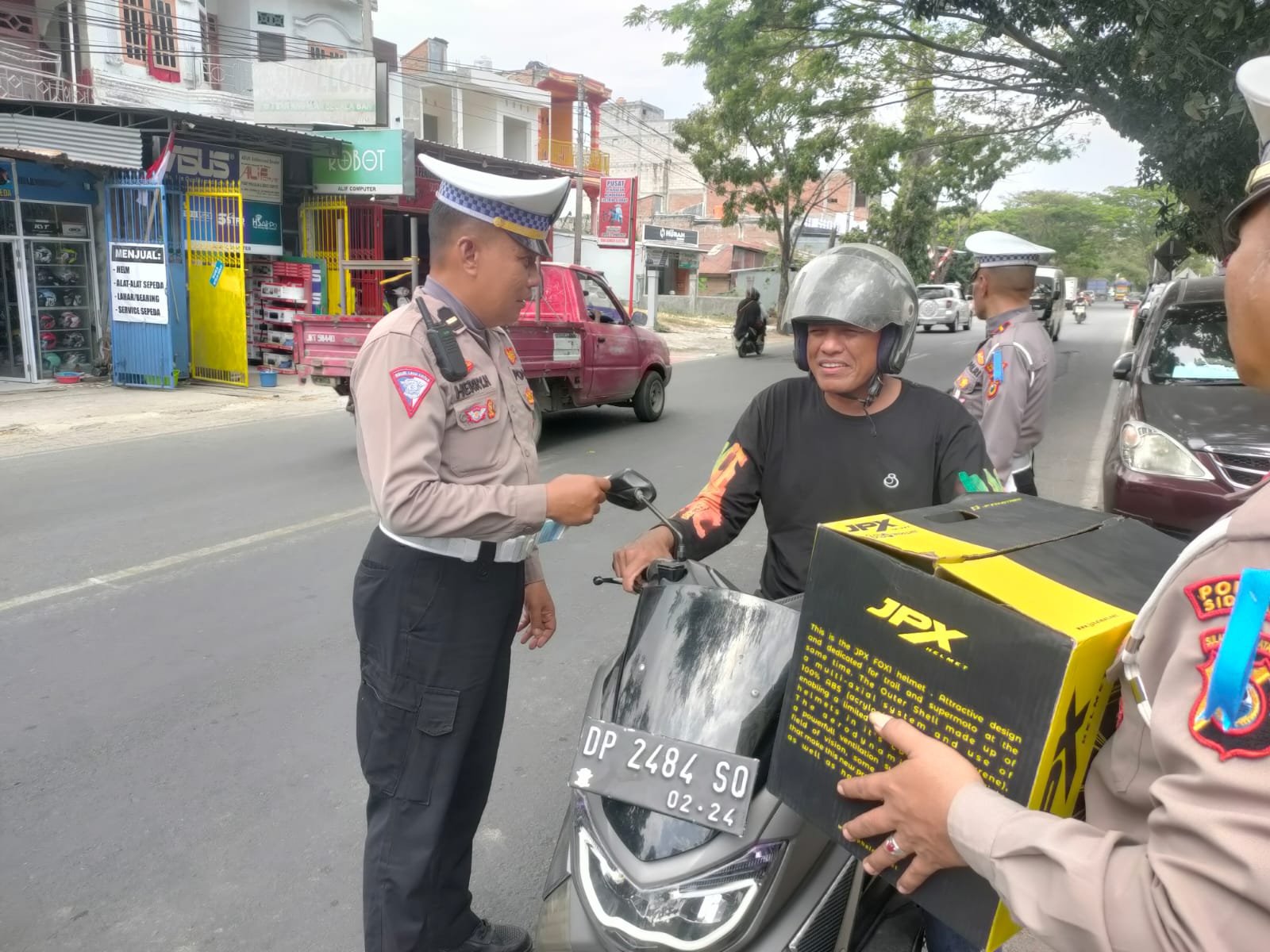 Hari Ketiga Operasi Zebra Pallawa 2023, Sat Lantas Polres Sidrap Kampanye Keselamatan Berlalulintas dengan Membagikan Helm
