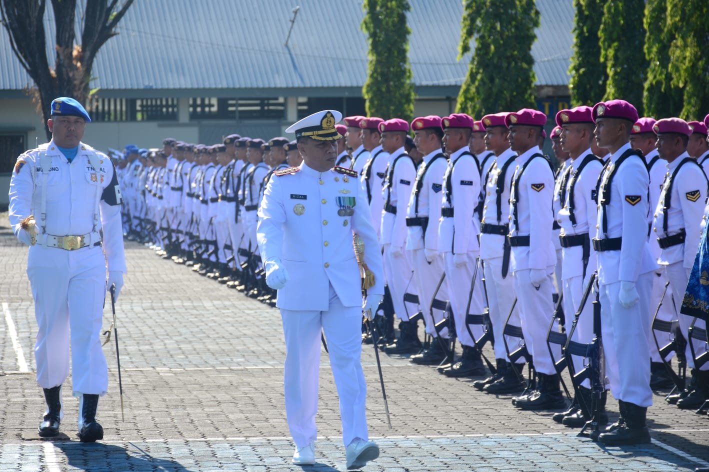 MAKASSAR – Prajurit Petarung Yonmarhanlan VI Makassar mengikuti upacara peringatan Hari Ulang Tahun Tentara Nasional Indonesia Angkatan Laut ke-78 di Lapangan Apel Arafuru Mako Lantamal Vl. JL.Yos Soedarso No.308 Kota Makassar. Senin (11/09/2023)