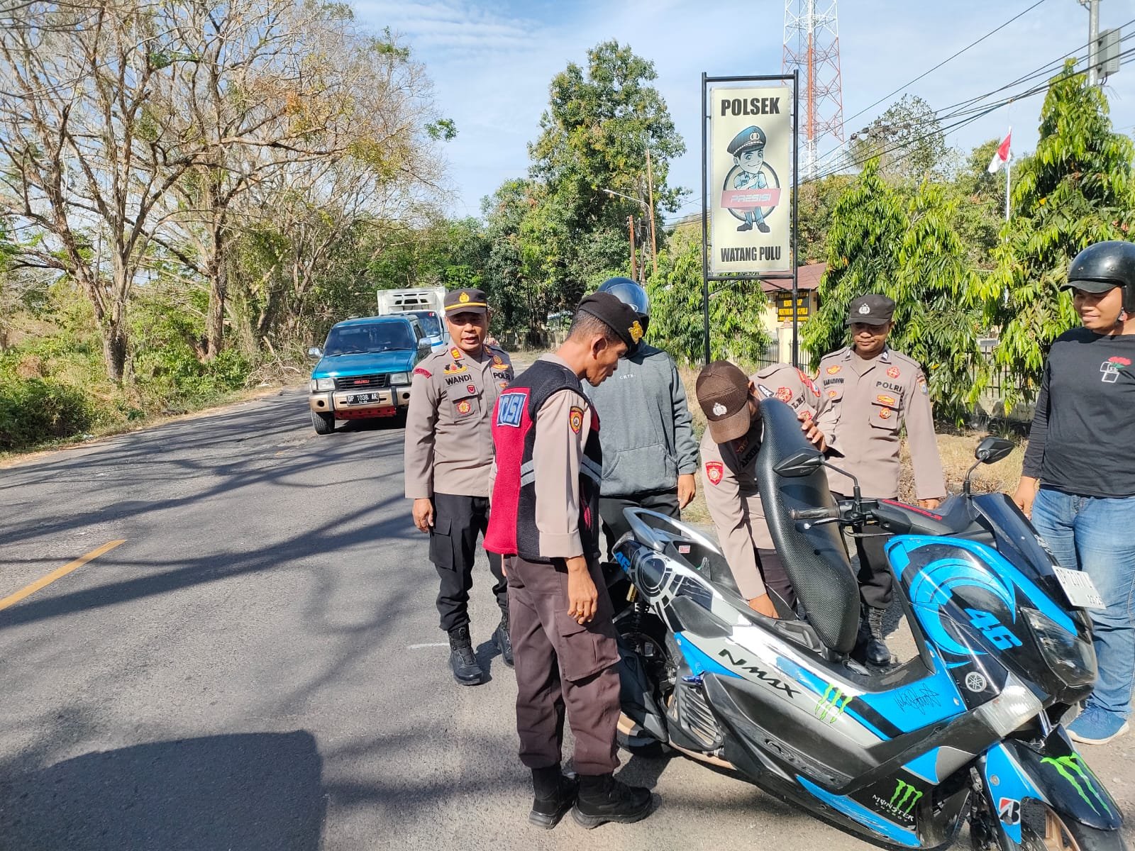 SIDRAP – Personel Sat Samapta Polres Sidrap bersama Polsek Watang Pulu yang dipimpin oleh Kapolsek AKP Suwandi,S.Sos dan Kasat Samapta AKP Agung Laksono,SH, melaksanakan pemantauan dan monitoring pergerakan supporter PSM Makassar yang melintas di Jalan Poros Sidrap – Parepare menuju ke stadion Gelora BJ.Habibie.