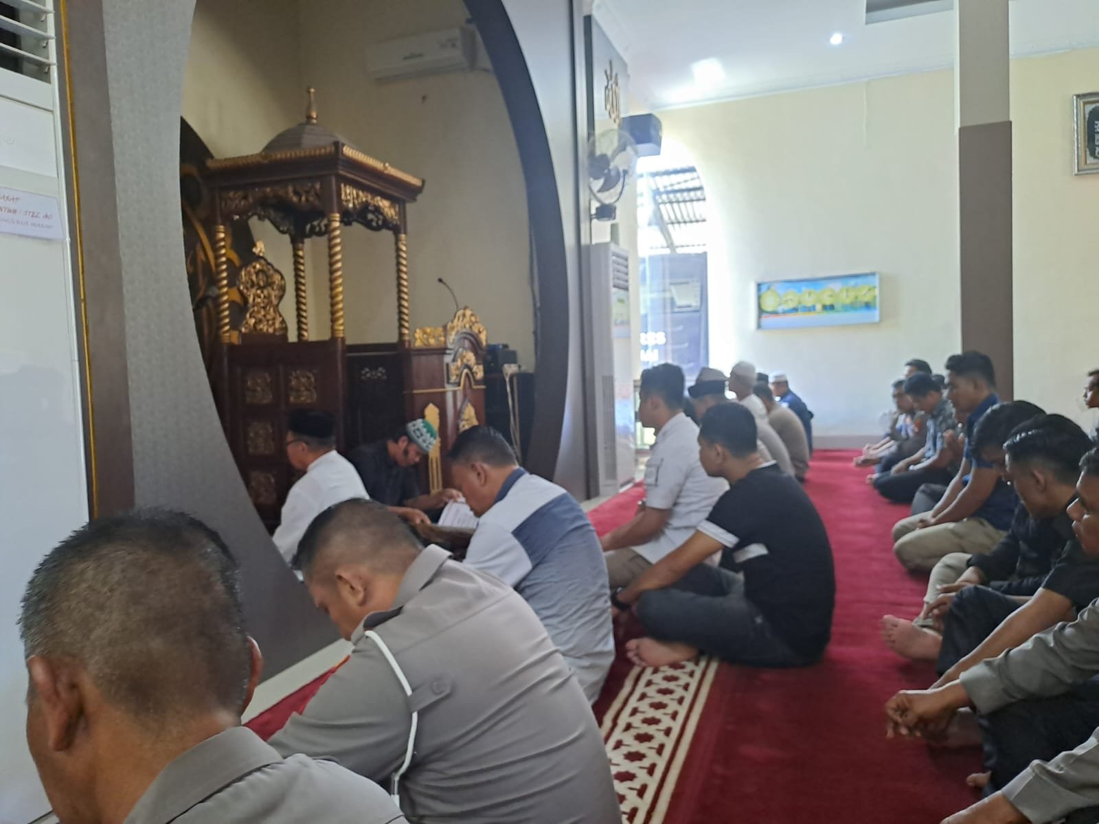 Dihadapan jamaah sholat dhuhur yang terdiri dari personel Polres Sinjai dan warga masyarakat, Bripda Arwansyah membacakan surah Ali Imran lanjutan pembacaan yang kemarin selanjutnya membaca terjemahannya.