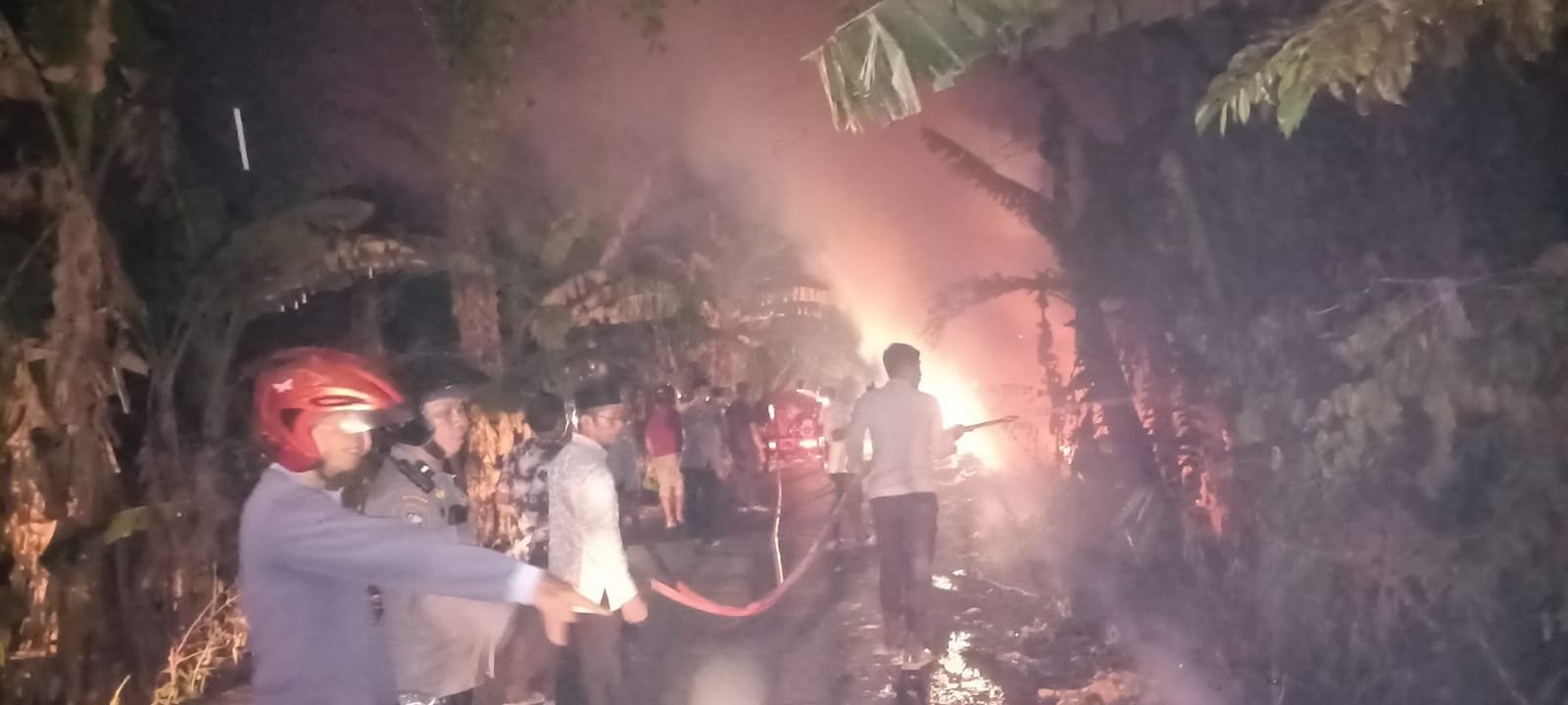 Kapolsek Bontonompo AKP Hasan Fadhlyh, SH bersama anggotanya berupaya memadamkan api agar tidak meluas kepemukiman warga.