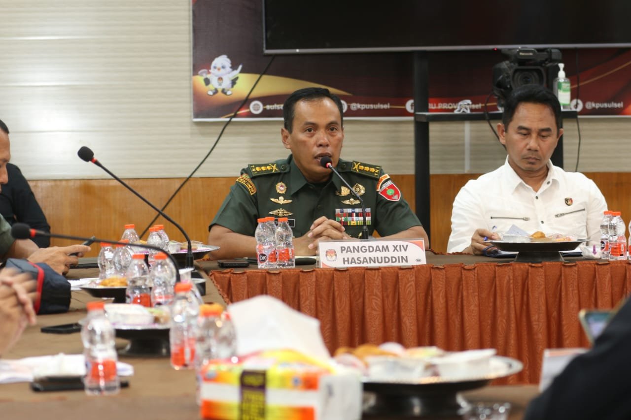 Mewakili Pangdam, Kolonel Enjang mengatakan dengan adanya kegiatan seperti ini semua stakeholder dapat bekerja sama dengan baik. Kodam XIV/Hasanuddin sendiri sesuai dengan Rentinkon Kodam siap mendukung operasi perbantuan TNI kepada Polri pada penyelenggaraan Pemilu 2024 sesuai dengan peraturan perundang-undangan perbantuan TNI kepada Polri.