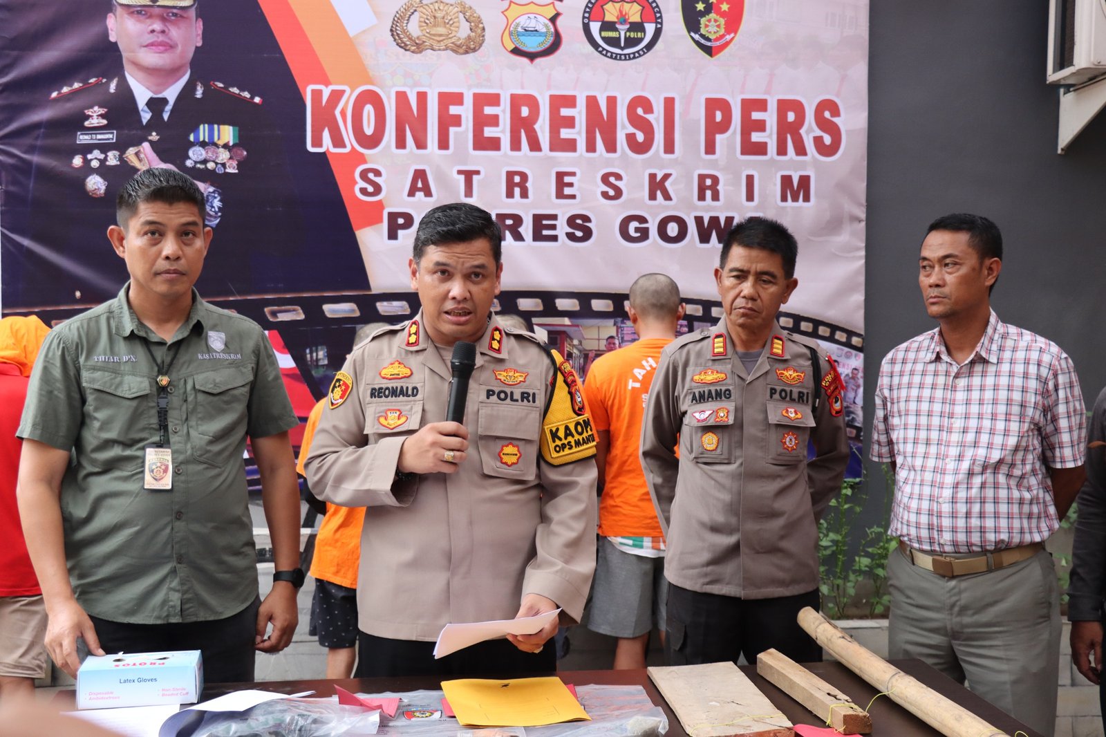 GOWA – Polres Gowa berhasil mengamankan 4 (empat) orang pelaku kasus kekerasan yang dilakukan secara bersama-sama dan menggunakan senjata tajam yang mengakibatkan meninggalnya seseorang. Konferensi Pers ini dilaksanakan di pelataran Kantor Polres Gowa, Kamis (16/11/2023) sore.