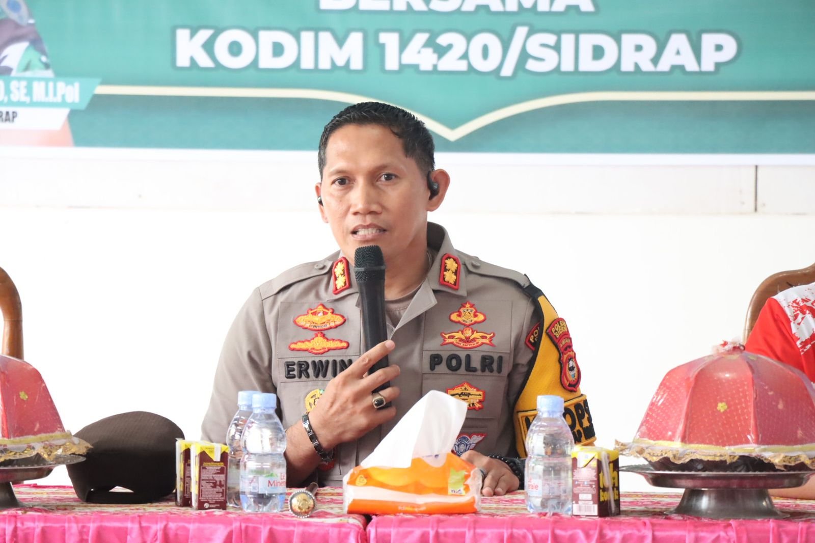 Kapolres Sidrap AKBP Erwin Syah, S.I.K.,MH mengatakan bahwa, Netralitas Polri dalam Pemilu Harga Mati. Maka itu, Anggota Polri khususnya Personel Polres Sidrap tidak boleh membantu mendeklarasikan dukungan kepada partai peserta Pemilu dan bakal pasangan Caleg, Capres dan Cawapres.