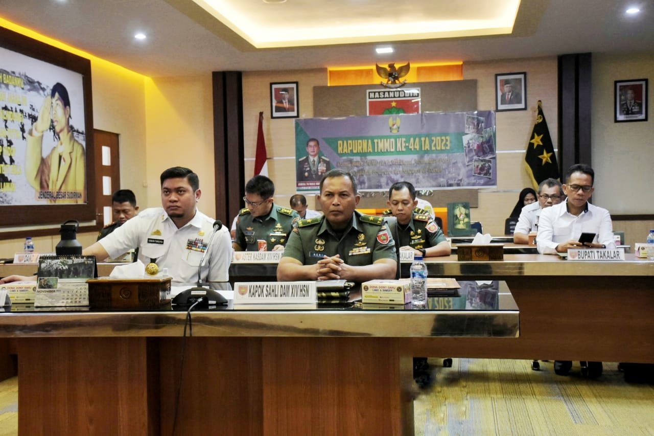 Makassar – Kapoksahli Pangdam XIV/Hasanuddin Brigjen TNI Heri Sutrisma, S.H., M.A., mewakili Pangdam, mengikuti Rapat Paripurna TNI Manunggal Membangun Desa (TMMD) Ke-44 Tahun 2023, secara virtual, bertempat di Ruang Vicon Puskodalopsdam, Kota Makassar. Rabu, (6/12/2023).