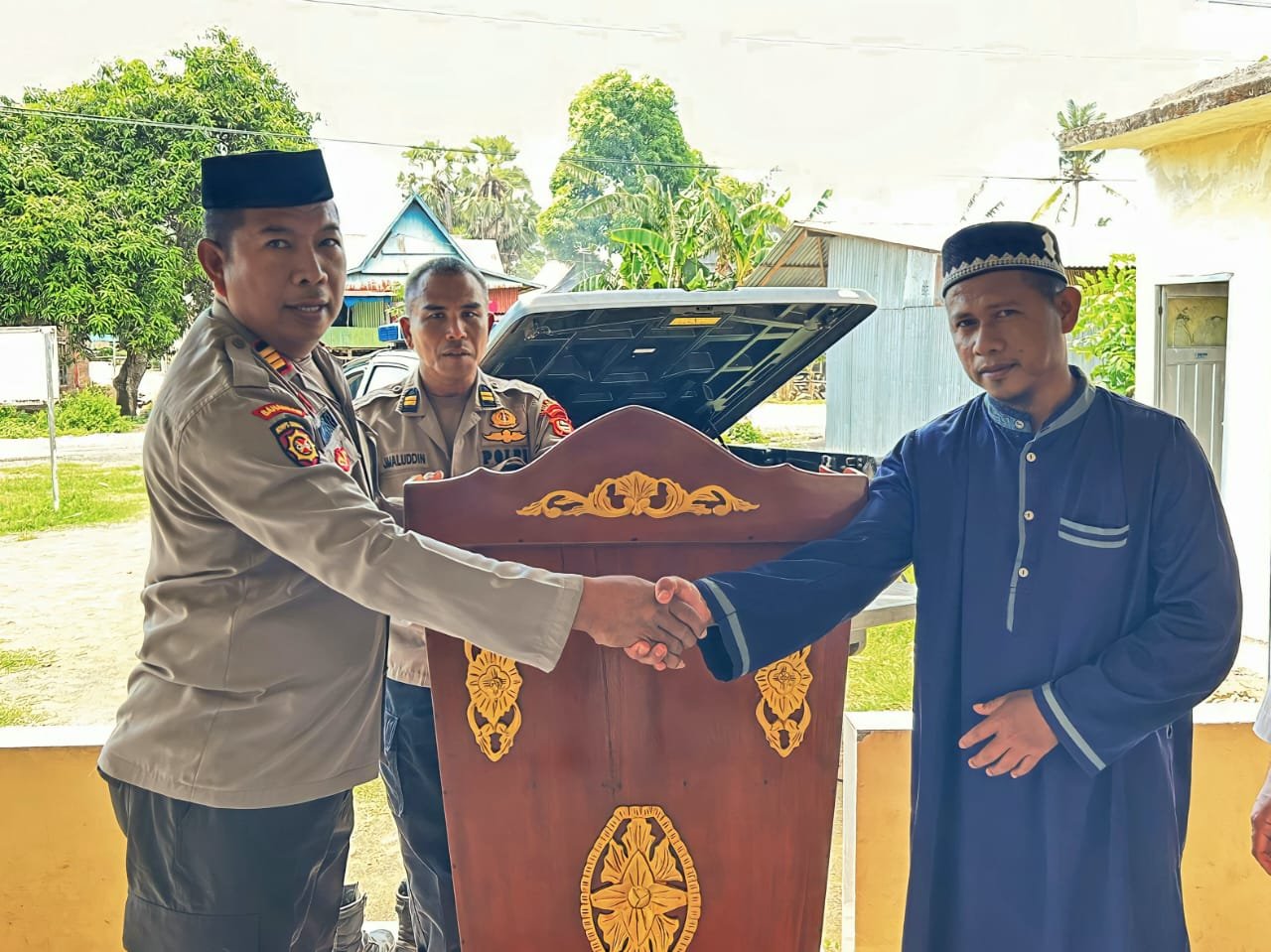 Polres Takalar Bantu Masjid Nurul Hidayah Pa’toppakang Dengan Mimbar Khotib