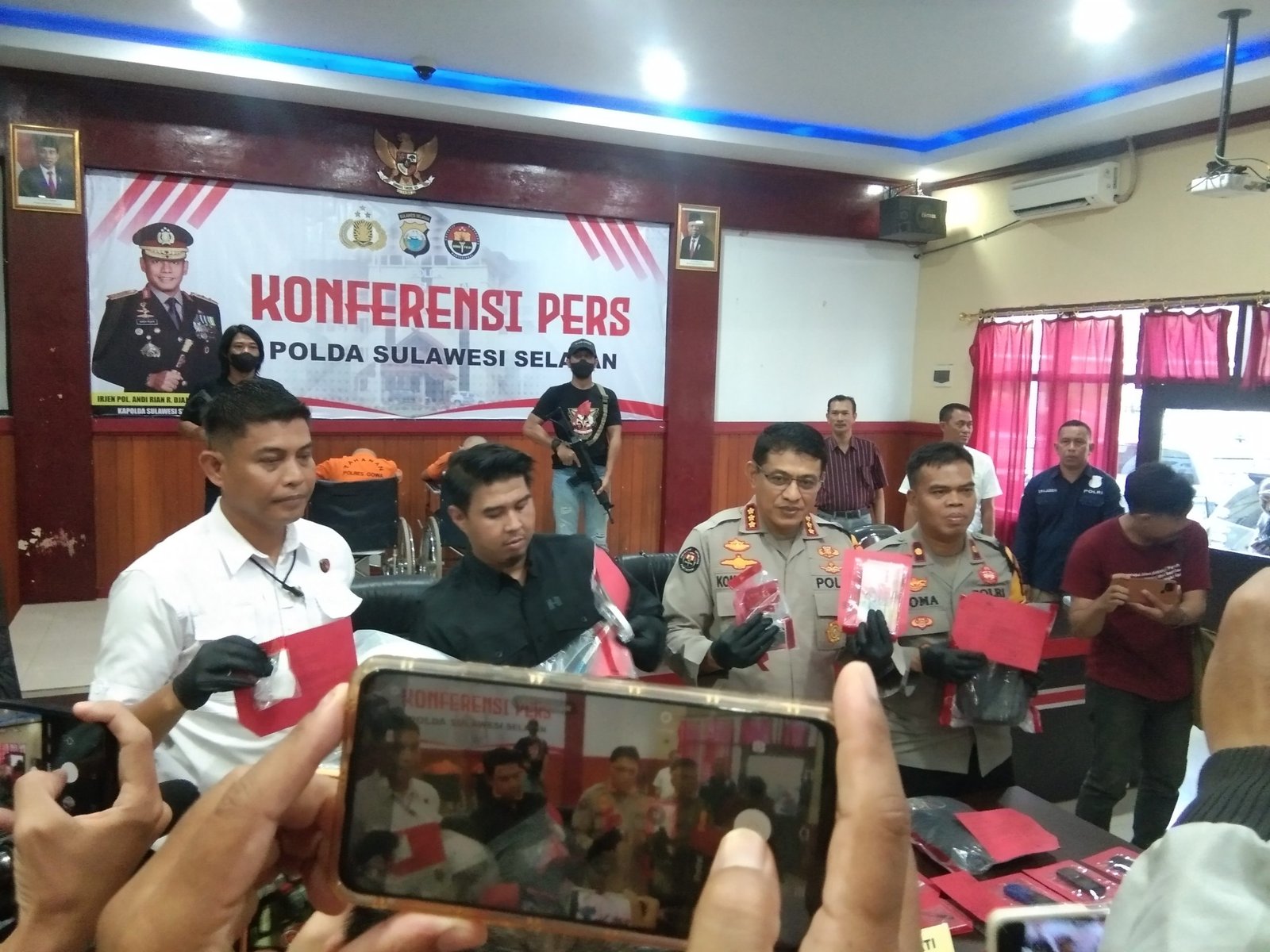 Kabidhumas Polda Sulsel Kombes Pol Komang Suartana didampingi Wakapolres Gowa dan Kasat Reskrim Saat menggelar Press Release di Mapolres Gowa , Rabu, (27/12) mengatakan 2 Pelaku berhasil ditangkap yakni HN (27) warga Klapanunggal Kab.Bogor dan AS (45) warga Cilodong Kota Depok, sementara 2 lainnnya berstatus DPO, yaitu Perempuan PS dan RA.
