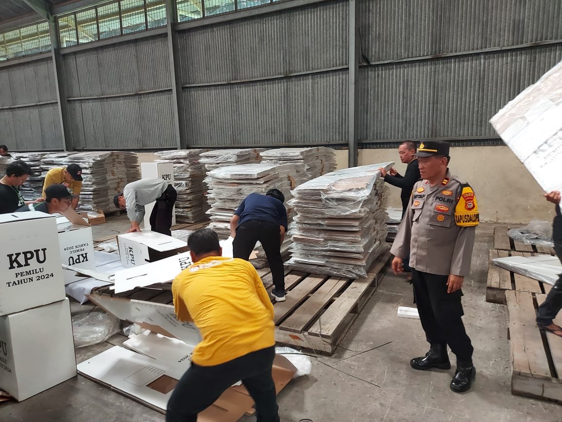 Pengamanan tersebut dilakukan untuk mengantisipasi terjadinya gangguan keamanan dan ketertiban selama pelaksanaan perakitan kotak suara pemilu 2024.