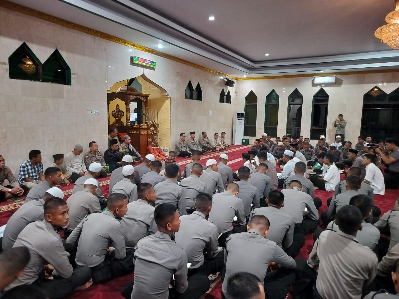 Malam yasinan digelar di Masjid Syuhada 45 Polda Sulsel yang dihadiri Karo SDM Polda Sulsel Kombes Pol Aris Haryanto dan para Kabag Biro SDM Polda Sulsel serta personel Mapolda Sulsel, Kamis (4/1/2024) malam.