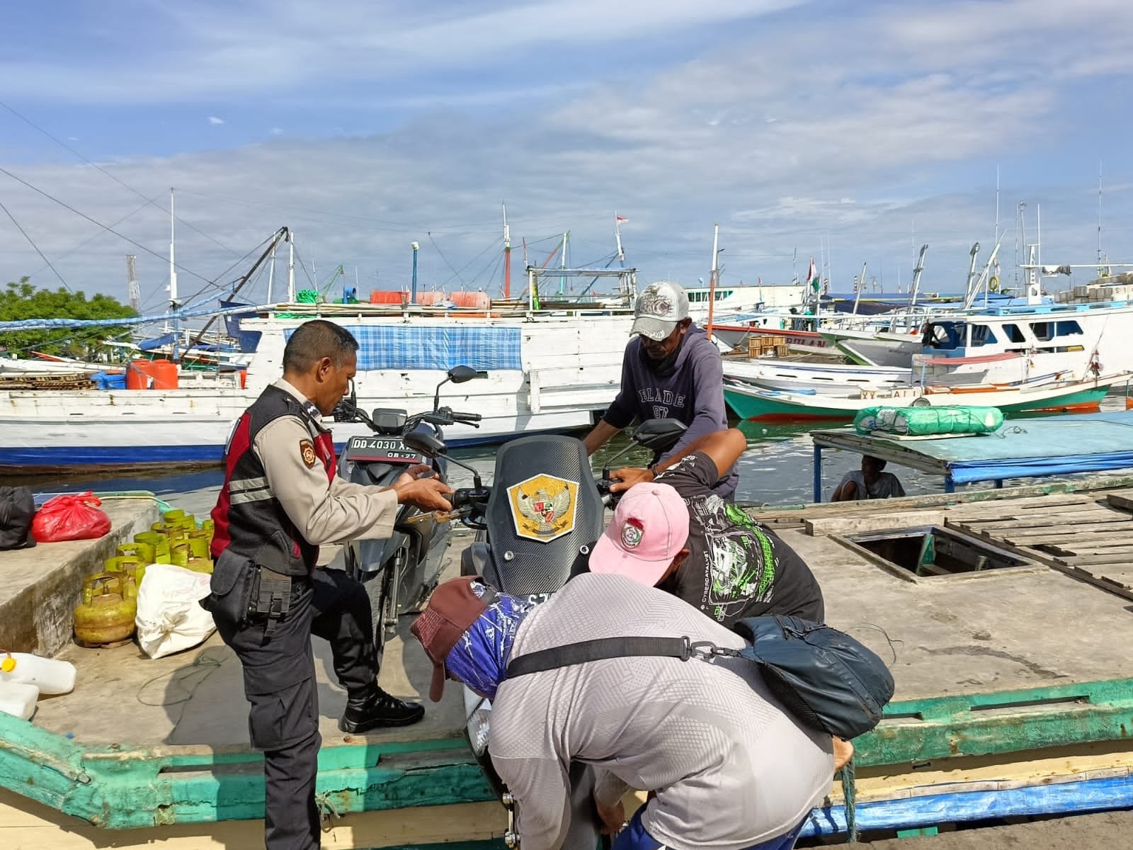 โ€œSelain melakukan kegiatan patroli dan sambang di wilayah hukumnya, Personil Polsek Kawasan Paotere membantu warga masyarakat dari Pulau yang hendak turun dari kapal tradisionalโ€Ucap Kasi Humas IPTU Hasrul