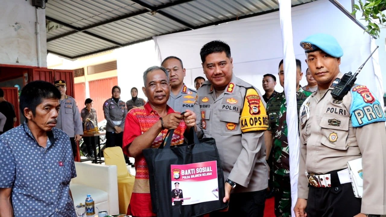 HUMDER – Kapolres Pelabuhan Makassar AKBP Yudi Frianto menyalurkan bantuan sembako kepada masyarakat . Bantuan ini dalam rangka Jumat Berkah yang digelar Kapolda Sulsel Irjen Polisi Andi Rian R Djajadi.