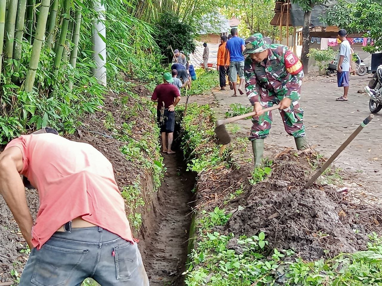 Kompak,Babinsa Koramil 1409-08/Bontonompo Bersama Warga Gotong Royong Bersihkan Saluran Air