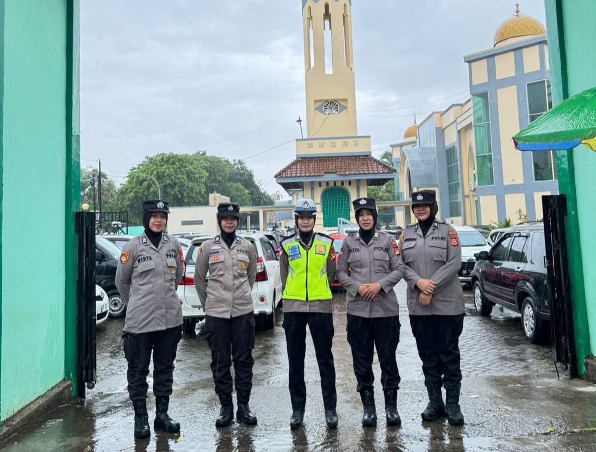 Anggota Polwan yang diterjunkan bertugas menjaga keamanan dan arus lalulintas di masjid Agung Takalar dan Masjid Nurul Falah Pariโrisi.