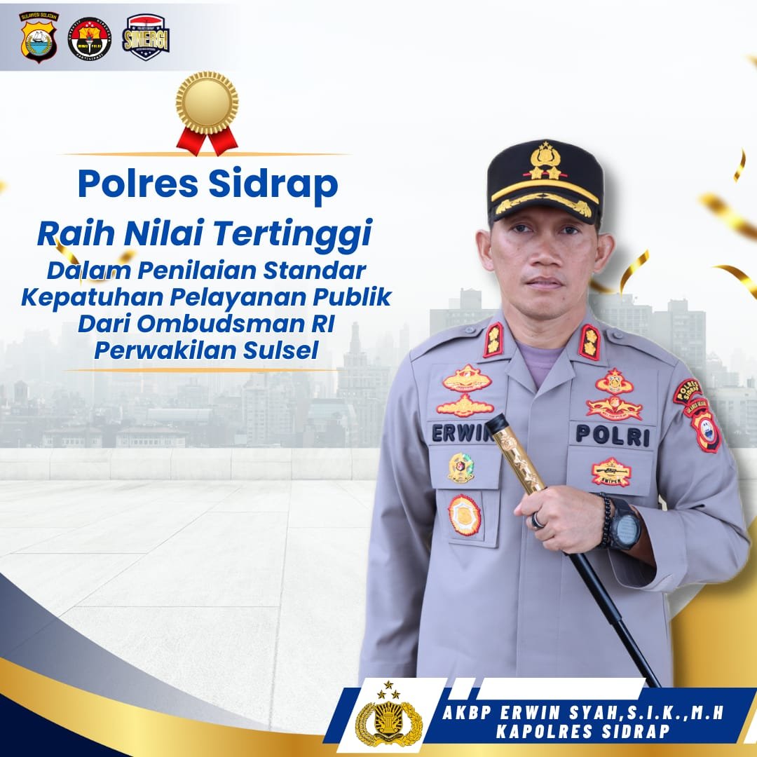 “Alhamdulillah Polres Sidrap berhasil meraih nilai tertinggi pada Penilaian Kepatuhan lingkup Polres Se-Sulsel dari Ombudsman. Ini harus dipertahankan dan penghargaan ini tidak lepas dari kerja keras Personil yang selama ini terus mendidikasikan diri sebagai Pelayan Masyarakat, “ Jelas Kapolres.