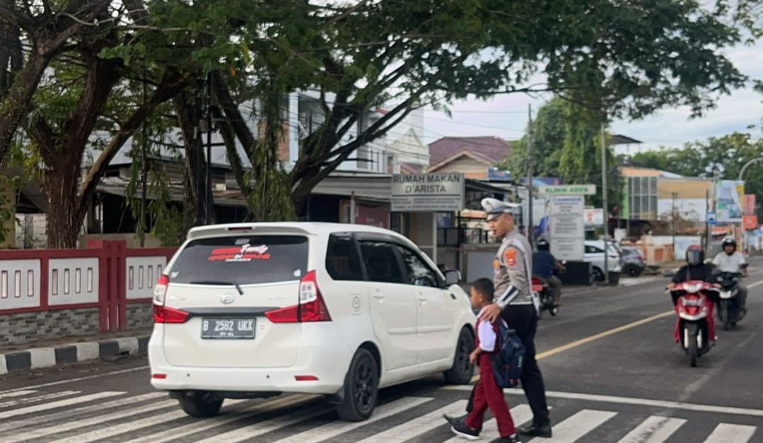 โDalam kegiatan tersebut, petugas melaksanakan Pengaturan, Penyebrangan anak sekolah dan warga serta berikan himbauan kepada pengguna jalan agar mentaati rambu rambu lalu lintas jalan,โ ujarnya.