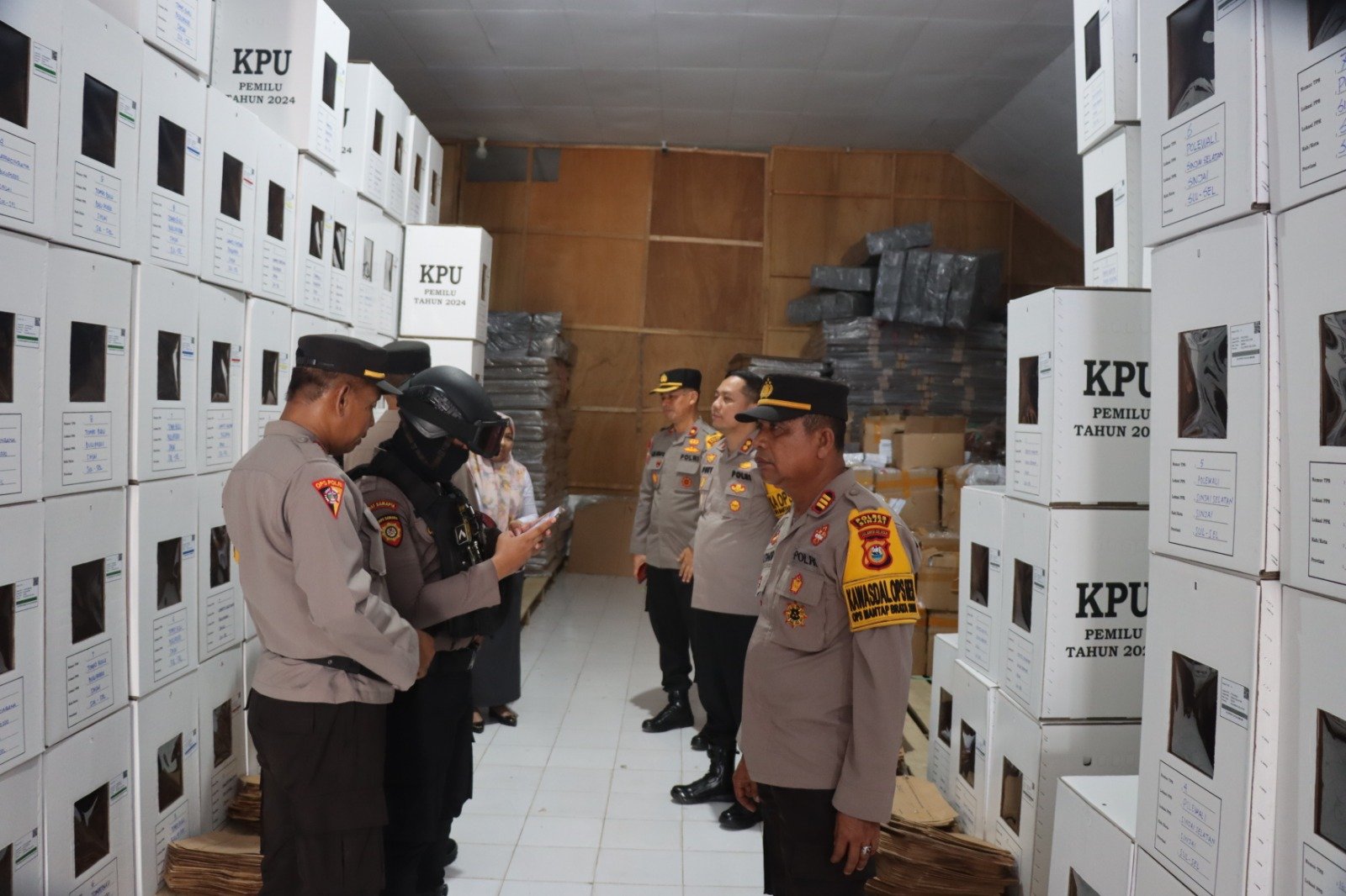 Pengecekan dan pemeriksaan gudang logistik untuk memberikan rasa aman, dan memastikan bahwa logistik pemilu dalam keadaan aman dan terhindar dari hal hal yang tidak kita inginkan bersama.