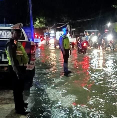 Diinformasikan oleh Kasat Lantas, hingga menjelang petang ketinggian air telah berangsur-angsur surut.