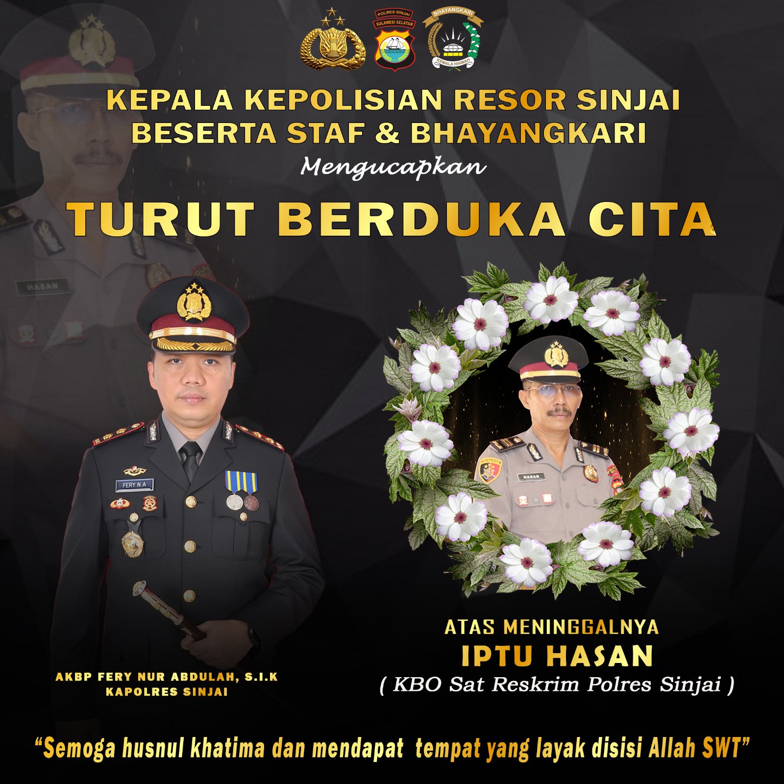Sinjai – Kepolisian Resor Sinjai sedang berduka disebabkan kehilangan salah seorang personelnya yang berdedikasi tinggi yakni Almarhum Iptu Hasan yang meninggal dunia pada hari ini Minggu (21/1/24) sekitar pukul 01.25 Wita.