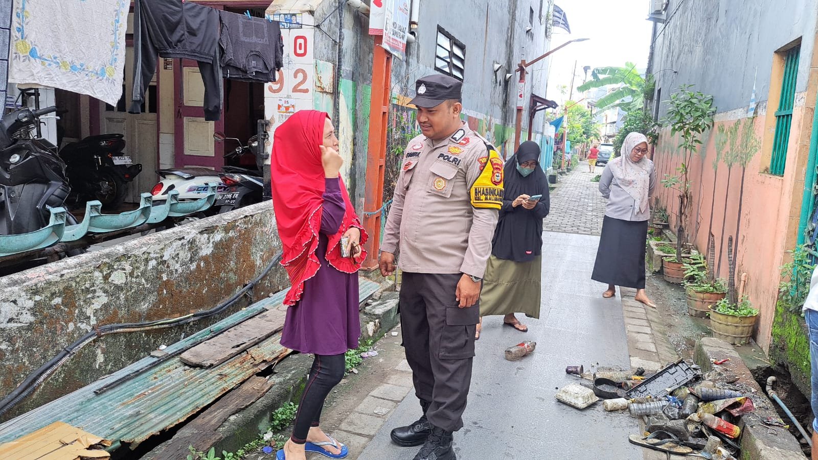 HUMDER – Bhabinkamtibmas Polsek Wajo Polres Pelabuhan Makassar Bripka Syamsul Alam melaksanakan kegiatan sambang kepada warganya yang ada di kelurahannya untuk memberikan pesan-pesan kamtibmas (keamanan dan ketertiban masyarakat) terkait pemilu 2024, Selasa (23/01/2024)