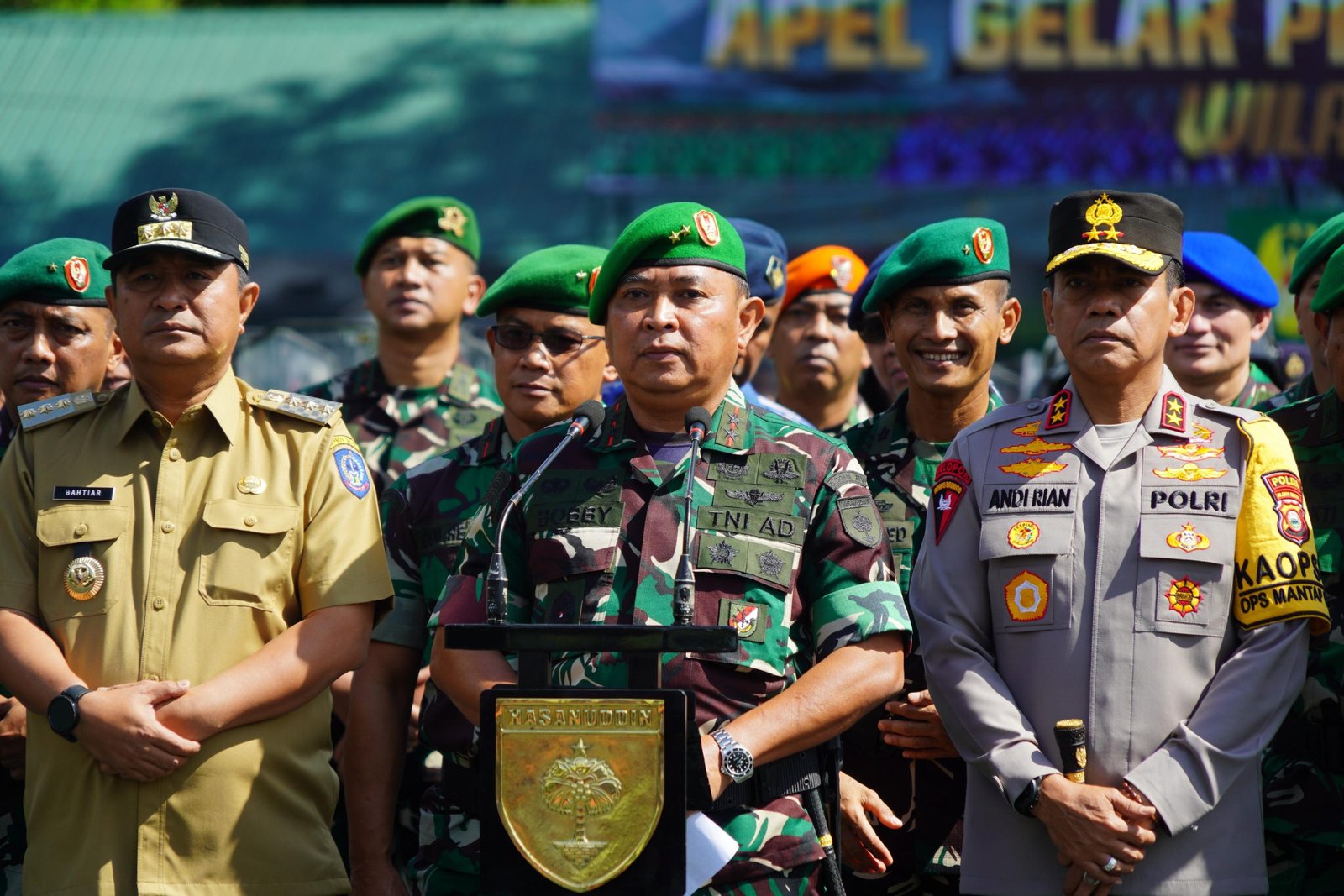 Makassar – Pangdam XIV/Hasanuddin Mayjen TNI Bobby Rinal Makmun, S.I.P., memimpin Apel Gelar Pengamanan Pemilu Tahun 2024 secara serentak di Wilayah Kodam XIV/Hasanuddin, bertempat di lapangan M. Yusuf Makodam, Jl. Urip Sumoharjo, Kota Makassar. Kamis, (1/02/2024).