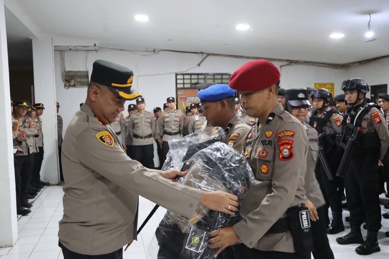 HUMDER – Polres Pelabuhan Makassar gelar apel pendistribusian perlengkapan kaporlap dalam rangka pam TPS di laksanakan lMapolres tersebut, Senin (05/02/2024