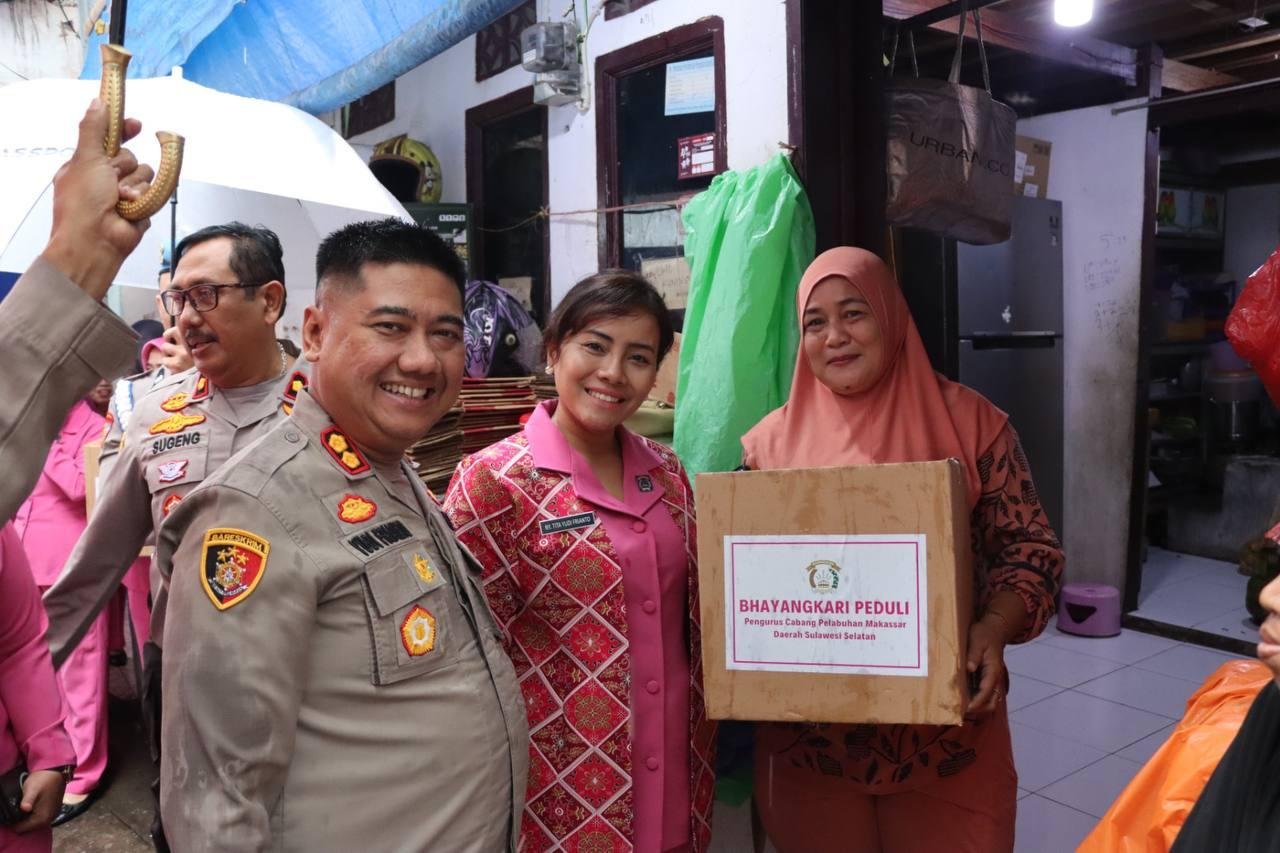Kemudian, Kapolres Pelabuhan Makassar bersama Ketua Cabang Bhayangkari Pelabuhan Makassar didampingi oleh PJU, Polsek Wajo, pengurus Bhayangkari mengunjungi beberapa rumah warga untuk menyerahkan paket sembako dari Kapolda tersebut.