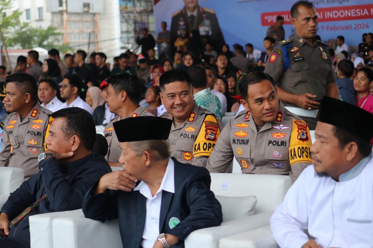hadiri acara Kegiatan Bakti Sosial, Pasar Murah dan Bazar UMKM Polri dalam rangka โ€œPemilu Damai Indonesia Majuโ€ di Lapangan Karebosi Kota Makassar, Rabu (07/02/2024)