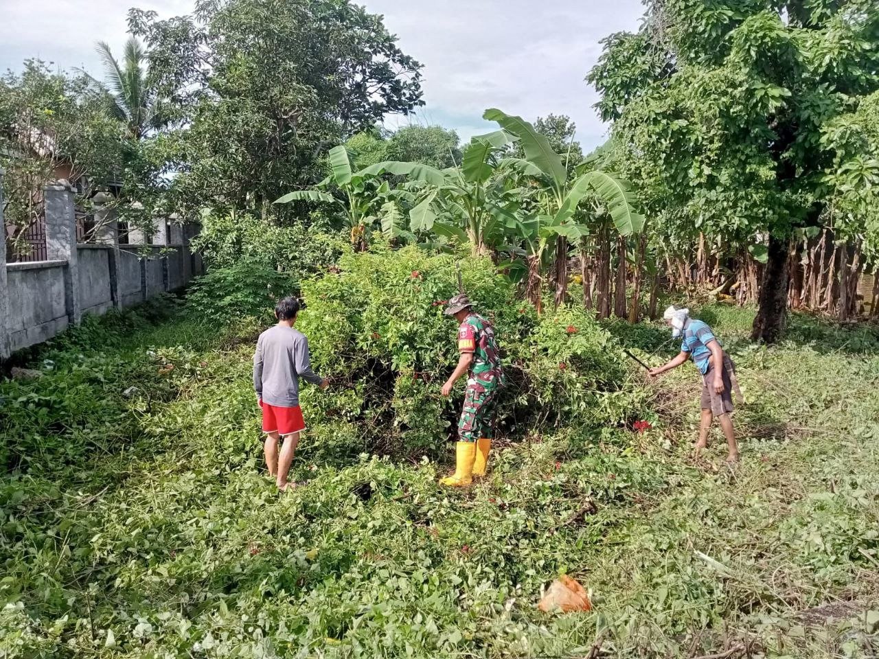 GOWA – Guna menumbuhkan kepedulian masyarakat terhadap kebersihan lingkungan sekitarnya untuk membasmi sarang nyamuk yang dapat menimbulkan bibit penyakit Serka Suhardi J.Babinsa Koramil 1409-06/Bajeng bersama masyarakat melaksanakan gotong royong pembersihan rumput liar di dusun Manjalling Lompo desa Manjalling kec Bajeng Barat kab Gowa. Kamis (8/2/2024)