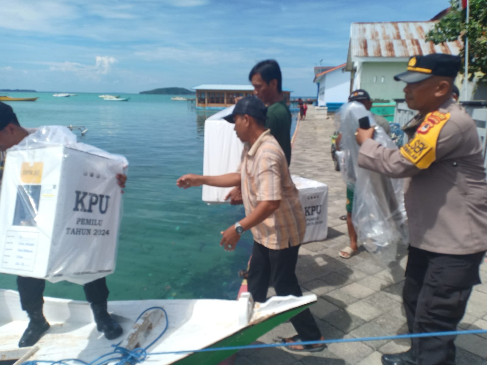 Sinjai – Kapolsek Pulau Sembilan, Polres Sinjai Iptu Sahabuddin, memimpin langsung pengamanan dan pengawalan logistik Pemilu 2024 dari PPS Desa Pulau Harapan menuju Tempat Pemungutan Suara (TPS) 9 dan 10 yang berada di Pulau Liang-liang melalui jalur laut. Upaya ini dilakukan guna memastikan kelancaran dan keamanan proses demokrasi di wilayah hukumnya.