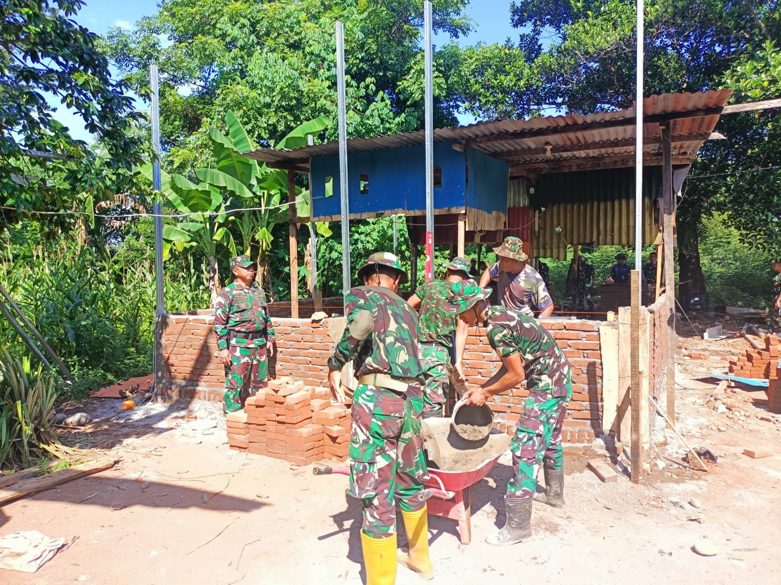 Dalam kegiatan tersebut, anggota Satuan Tugas (Satgas) TMMD ini memulainya dengan melaksanakan apel pagi di lanjutkan pengerjaan sasaran Pembangunan.