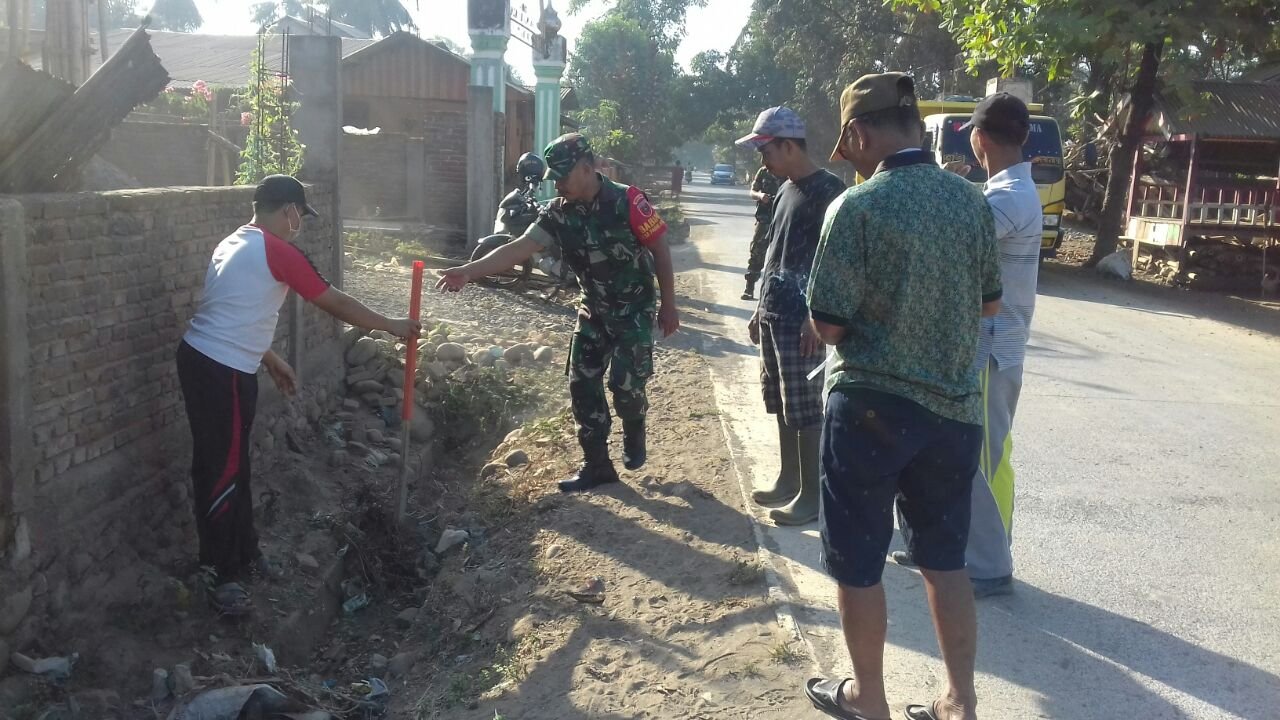 “Kegiatan membersihkan saluran air, selain menciptakan lingkungan yang bersih dan memperlancar air mengalir saat hujan turun, juga meningkatkan sikap gotong rotong di tengah – tengah warga masyarakat.” ucap Babinsa