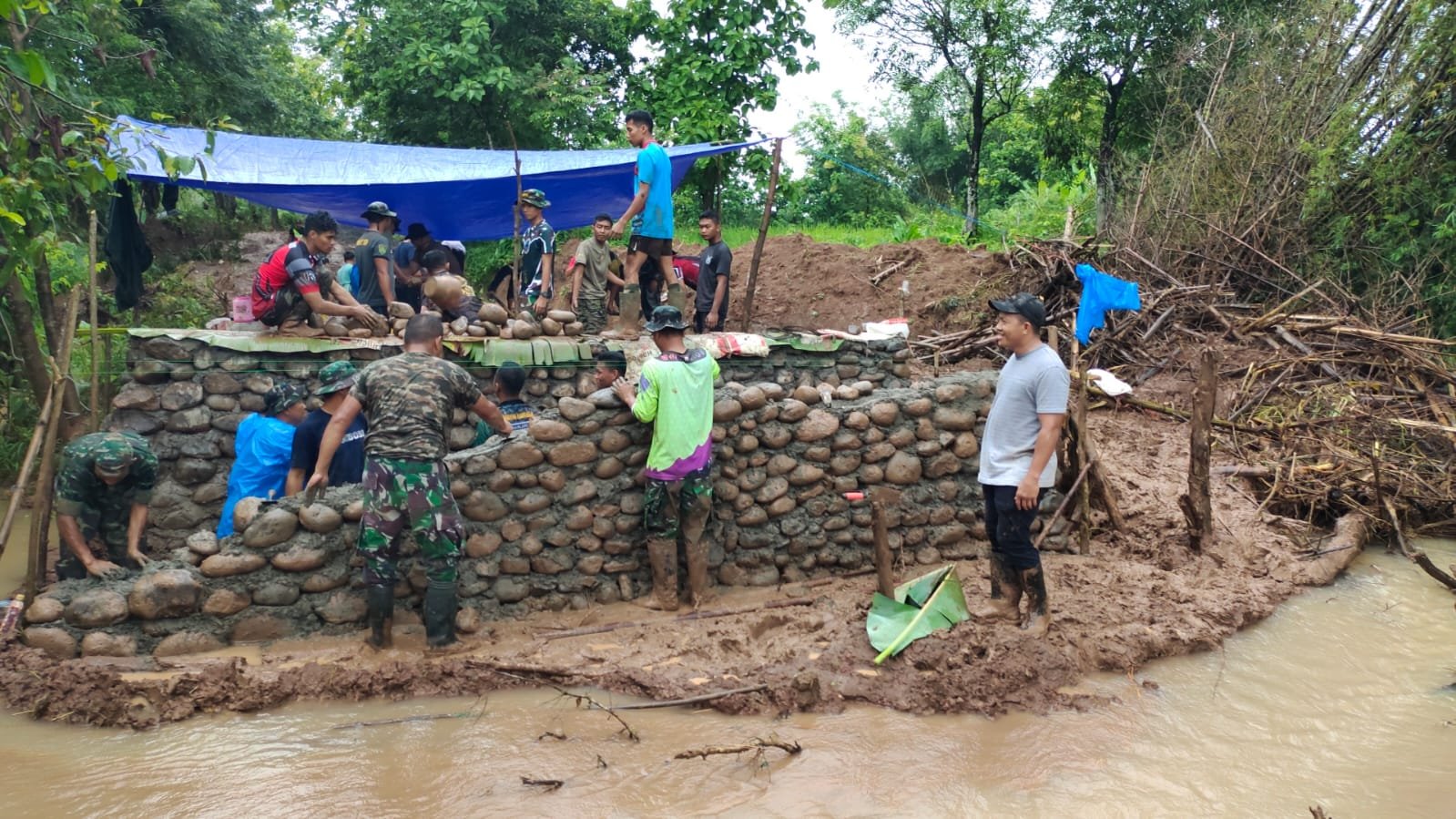 GOWA – Di sela kesibukannya sebagai Komandan Kodim 1409/Gowa sekaligus Dansatgas TMMD ke-119 TA 2024, Letkol Inf Muhamad Isnaeni Natsir, S.I.P walaupun di bawah guyuran hujan masih menyempatkan waktu untuk turun langsung membantu pengerjaan sasaran fisik TMMD yaitu pengerasan jalan dan pembuatan Plat Duicker di Desa Panaikang Kecamatan Pattallassang, Kab. Gowa, Provinsi Sulawesi Selatan.