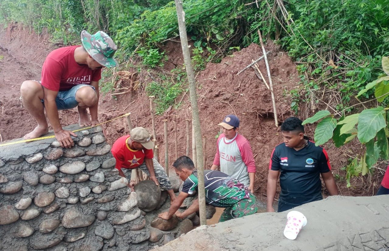 Terlihat sangat bersemangat dalam kebersamaan Anggota Satgas TMMD bersama masyarakat setempat yang saling bahu membahu mengangkat batu untuk pembuatan plat duiker jalan dikerjakan secara bergotong-royong agar pengerjaan bisa lebih maksimal serta selesai tepat waktu.