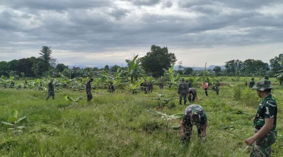 GOWA – Wujudkan ketahanan pangan nasional dan pemanfaatan lahan, Kodim 1409/Gowa terus melakukan perawatan tanaman pisang yang ditanam di lahan ketahanan pangan Kodim 1408/Gowa di Kelurahan Panggentungan Kec. Somba Opu Kab. Gowa, Selasa (12/3/2024).