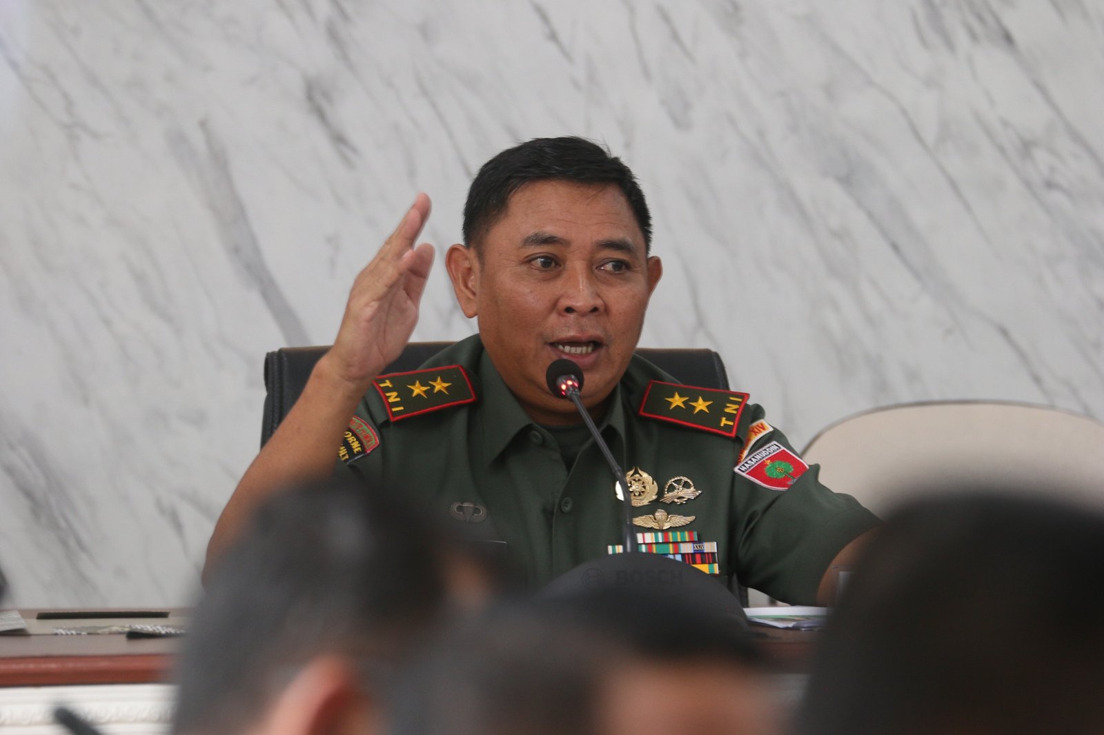 Makassar – Pangdam XIV/Hasanuddin Mayjen TNI Bobby Rinal Makmun, S.I.P., memberikan pengarahan kepada seluruh Komandan Satuan (Dansat) Jajaran Kodam XIV/Hasanuddin yang diikuti secara langsung maupun virtual, bertempat di Ruang Bina Yudha (RBY) Makodam, Jl. Urip Sumoharjo, Kota Makassar. Senin, (18/03/2024).