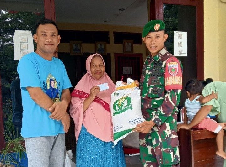 โKami turun langsung mendistribusikan bantuan beras tersebut kepada warga masyarakat, karena bantuan Sembako berupa beras ini memang sangat di butuhkan dan diharapkan bisa tepat Sasaranโ Pungkas Babinsa Serda Chaeril hasan
