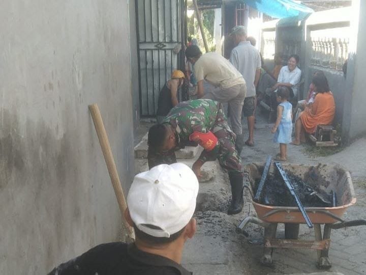 “Kegiatan membersihkan saluran air, selain menciptakan lingkungan yang bersih dan memperlancar air mengalir saat hujan turun, juga meningkatkan silaturahmi dan sikap gotong rotong di tengah – tengah warga masyarakat.” ucap Koptu Ali Imran