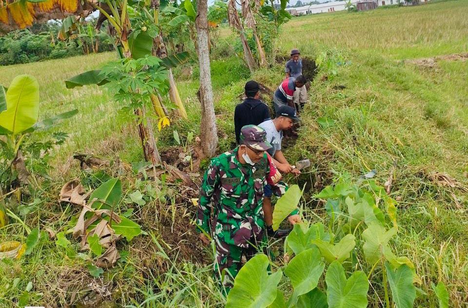 “Saluran air ini harus dijaga kelancarannya, sehingga sektor pertanian mampu panen dengan maksimal untuk mendongkrak kesejahteraan para petani,” ujar Babinsa.